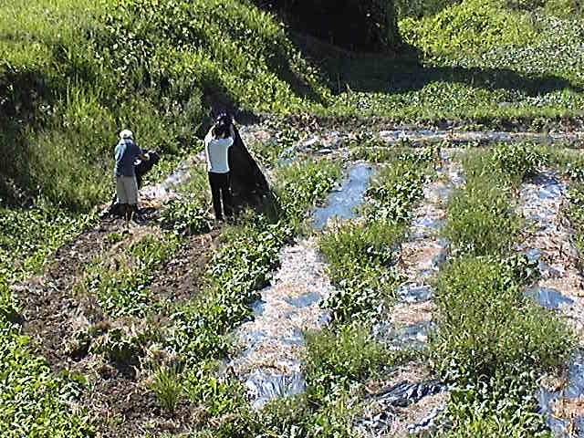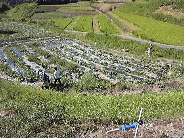 サツマイモ畑の草刈り、草むしり