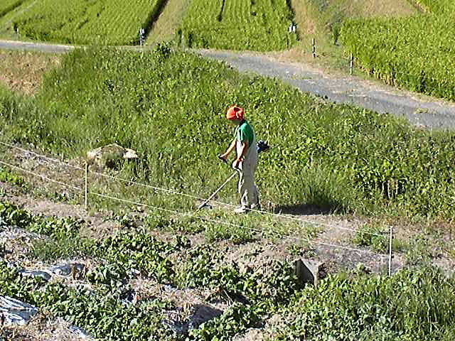 畑周りは草刈り機で刈り、